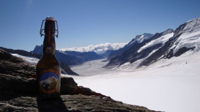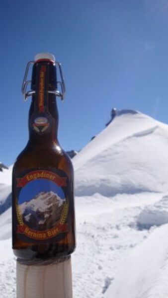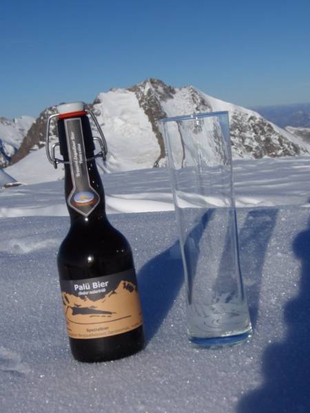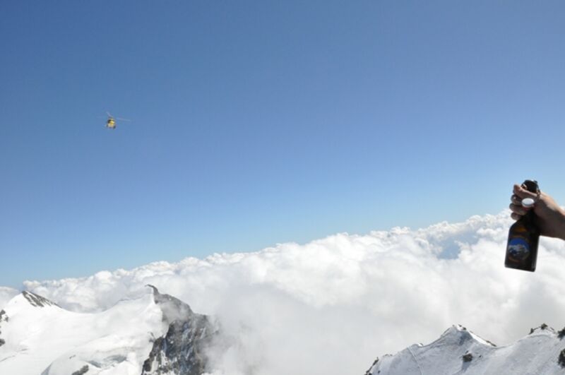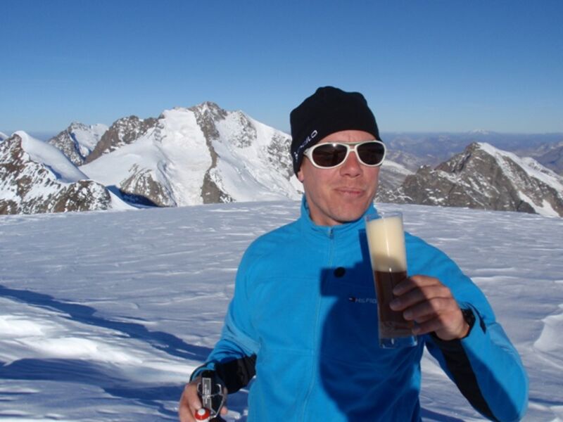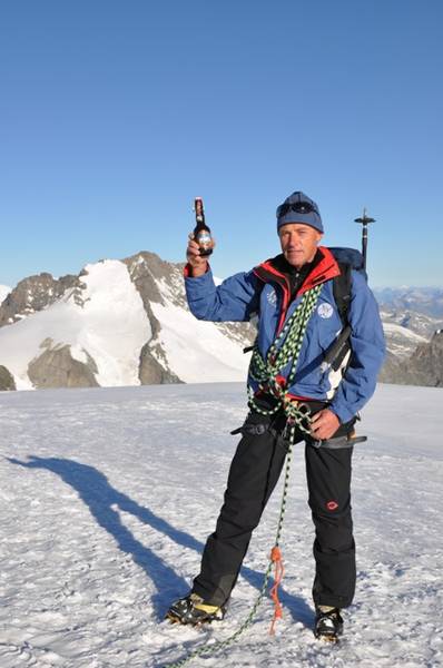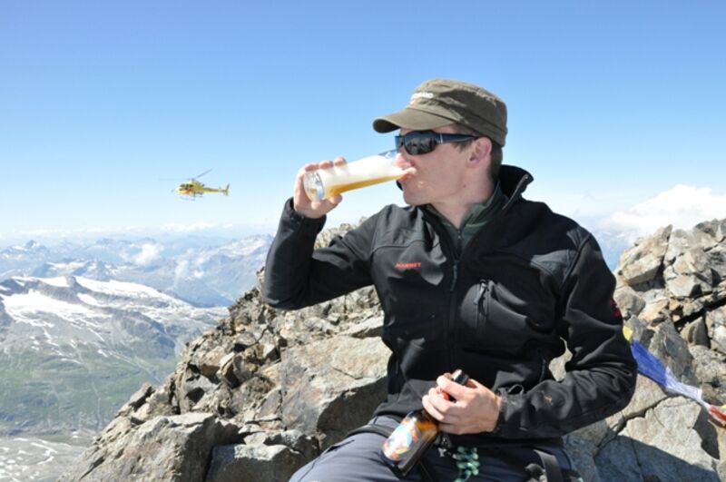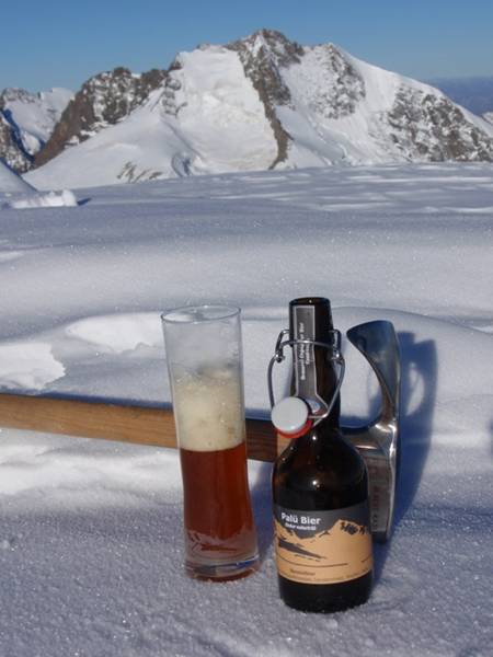 Jimmy Prins zum ersten mal auf dem Piz Palü mit dem Palü Bier! VIVA Fotos: Jimmy Prins und Albert Käslin